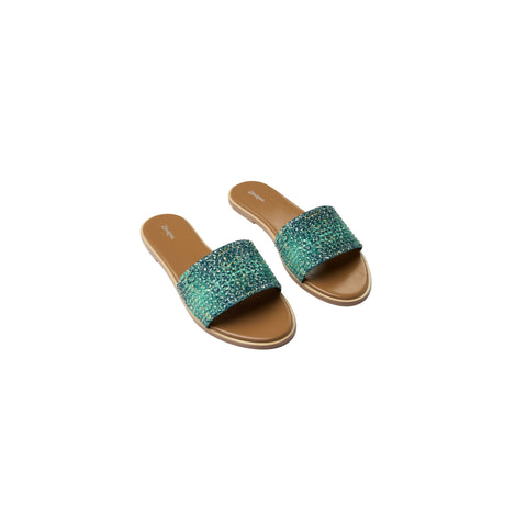 The newest collection from Zharova’s “Animale collection” will simply take your breath away. The classical slide sandal has been transformed with Zharova’s custom design. Featuring a green leopard print, embellished with genuine crystals for touch of glamour and contrasted with a tan insole. The outer sole showcases the etched Zharova emblem with an added heel slip protector.Made in ItalyCompositionVero Cuoio : 100% Calf Skin Italian LeatherHighlightsCustom Green Leopard PatternGenuine crystal embellished upperRound open toeTan insoleEtched outer soleHeel slip protector