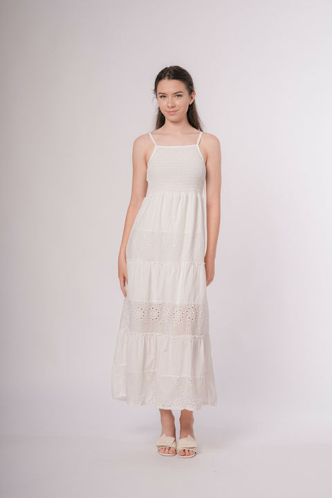 Bohemien Ruffled Maxi Dress With Eyelet Details. % 100 Cotton.Made In Turkey.