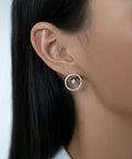 أقراط سترة تحدد الأناقة، مزينة بالزركونيا المكعبة. يمكنك ارتداء الأقراط بدون جزء السترة، كأقراط دائرية مستقلة. الأقراط لها قفل مسمار. ارتفاع السترة قابل للتعديل حسب حجم شحمة الأذن. مصنوعة من الفضة الإسترلينية عيار 925، ومزينة بالزركونيا المكعبة البيضاء بأعلى جودة. مغطى بمعدن مجموعة البلاتين الثمين - الروديوم (rh)، مما يمنع المنتج من التغميق. القطر الخارجي للدائرة: 1.7 سم، قطر الزركون المكعب: 3 مم.