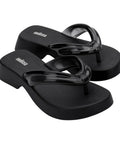 تم تصميم شبشب Melissa Air Bubble حول فكرة الراحة. مصنوع من بلاستيك PVC Melflex®️ ويتميز بنعل محقون بمادة EVA، مما يضمن الراحة دون وزن إضافي. من المؤكد أن هذا الزوج الأنيق سيحصل على مكان في خزانة ملابسك. • اللون الأسود