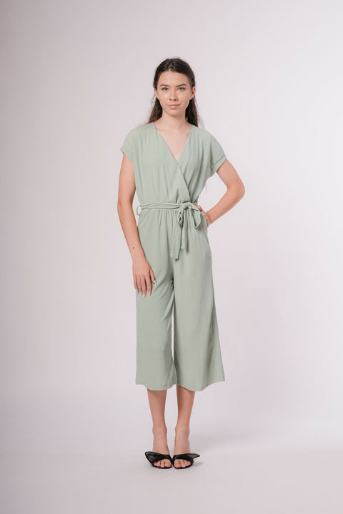 Cagla Anvelop Neck Minimalist Culotte Jumpsuit in Textured Knit Fabric.% 100 Polyester.Made In Turkey.