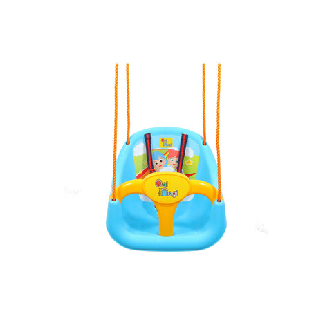 COMFORTABLE DESIGN: This high-backed swing seat, designed especially for babies and older, features an adjustable belt and tall sides for maximum comfort. This toddler outdoor swing is made from heavy duty hardware and weather-resistant rope. Rope length: 68 inch, weight limit: 66 pounds. SAFETY: It has an unremovable T-bar on the front that holds baby in. The straps extend to over the shoulders for a 3-point safety harness. The straps click in very securely to the T-bar. The 3ft ropes are a braided nylon and metal s-hooks on both ropes. WEATHER RESISTANCE: Ogi Mogi outdoor baby swing can be subjected to extreme heat, cold, dryness, or moisture. It stands up to a variety of outdoor environments. Brightly coloured, easy to wipe clean, and safe to be left outside. EASY TO INSTALL: You can suspend the swing from a branch, bar, or beam by throwing the end of the rope over and affixing it to itself. Alternatively, you can hang it from ceiling mounts or a doorframe anchor by simply clipping the carabiners onto your installed hardware. The seat comes with carabiners securely attached to the end of the ropes, all you need are some strong anchor points from which to hang it. Detailed instructions included. SAFE & STURDY: Ogi Mogi toys are made with high-quality plastic material so you can expect long-lasting durability. 100% safety certified. The raw materials we use in our products do not contain BPA.