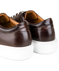 Stefano Borella Robert Low-Top Dress Sneaker: The Robert sneaker is a stylish evolution of the classic trainer, merging everyday comfort with Italian craftsmanship. Made from premium full-grain calfskin leather, each pair is hand-painted for a unique finish, and the Black & White version features a bold "Stefano Borella Collezioni" fabric band. Its lightweight EVA outsole provides grip and all-day comfort, while the pillow-padded tongue enhances wearability. Versatile enough for both casual and formal outfits, the Robert sneaker is a must-have for those who seek a sporty, stylish look. 100% made in Italy.The Robert low Top - ChocolateMaterial: Full-grain calfskin leather