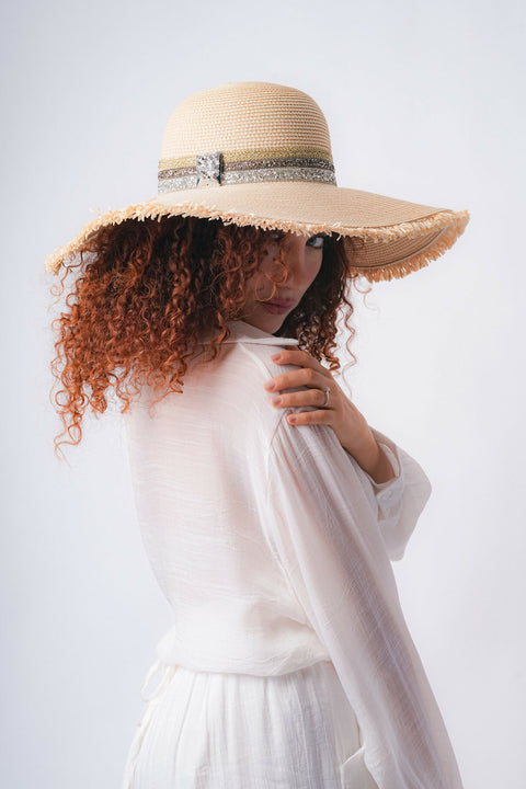 BEIGE ROUND HATSHINY HANDMADE DESIGN