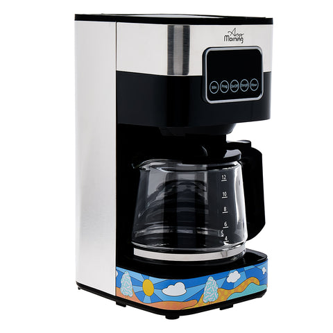 SMART TOUCH SCREEN: Featuring the LCD screen and touch screen, it is easy and intuitive for you to choose start time and strength (regular or bold) settings24-HOUR FULL PROGRAMMABILITY: Set the time for the coffee to be made and a pleasant multitoned signal alerts you when your coffee is ready. A useful function keeps the coffee hot for 2 hours KEEPS WARM FOR 2 HOURS: With a pad that can keep coffee warming for 2 hours after brewing is finished and will automatically shut off after 2 hours. ANTI DRIP FUNCTION: The anti-drip system enables you to pause and pour mid-brew with mess-free. SPECIAL DESIGN: The elegance and functionality of this coffee machine creates a welcoming atmosphere in your kitchen. Special design intense happy colours put you in a good morning mood
