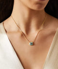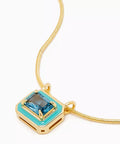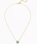Dive into a world where chic meets vibrancy with Luv Aj's Bezel pendant necklace. Featuring an east-west, bezel set emerald stone, this piece instantly catches the eye and holds it. Crafted from brass with CZ stones and bathed in gold, it's not just a necklace—it's a statement. Whether paired with a simple tee or a cocktail dress, it brings a dash of brilliance to every look.Pendant necklace with an east-west, bezel set emerald stone16" chain with 2" extenderPendant features an azore colored stone with turquoise enamel trimMade from Brass with CZ StonesPlated GoldLobster closureNecklace is 100% nickel-free and cadmium-free