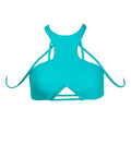 Intricately designed strappy high-neck top with built-in cups
