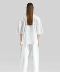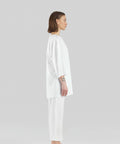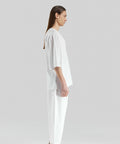 White oversized pants. Adjustable elastic waist. Comfortable and stylish with its light texture and breathable fabric.This signature piece is one of the many remarkable designs in the Unborn Iconic Collection.