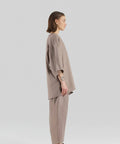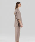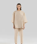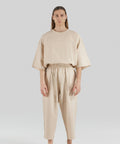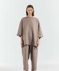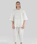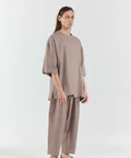 Black oversized t-shirt. Its fine linen fabric and minimalist design represents a break from the noise and chaos of modern life, a return to the basics of what it means to be human.This signature piece is one of the many remarkable designs in the Unborn Iconic Collection.
