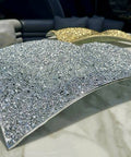 THE CENTRE PIECE OF THE "DIVA" COLLECTION MEASURES 50 CM X 50 CM IT IS MADE OF SHAPED GLASS WITH A SPECIAL "SAIL" SHAPE: THE CRYSTAL IS MANUALLY COVERED WITH GLASS GRITS OF VARIOUS SIZES AND THEY ARE FUSED TOGETHER AT VERY HIGH TEMPERATURES TO MAKE THEM A SINGLE PRODUCT OF GREAT VISUAL IMPACT. THIS SPECIAL COMBINATION COMES TO LIFE LIKE A DIAMOND WHEN ILLUMINATED. IN THIS VERSION THE DISH HAS BEEN COMPLETELY SILVER METALLIZED TO MAKE IT LIKE A JEWEL IN YOUR HOME.