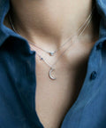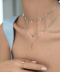 It's all the stars' fault. They beckon and attract our attention since childhood. We are growing up, but our interest in celestial bodies does not fade away. The legendary Coco Chanel dedicated her only jewelry collection to them. Since then, this has been a timeless trend, which is not surprising - months, moons, constellations most clearly reflect the incomprehensibility and mystery of a woman. The double Crescent Moon necklace is an ideal companion for every day; it adds a touching mystery to your look. The stones twinkle, the surface of the stars sparkles: a whole universe comes to life on the collarbones, which you will certainly want to comprehend and unravel. Chain length: 43cm + 5cm adjustment chain, crescent diameter: 1.1cm.