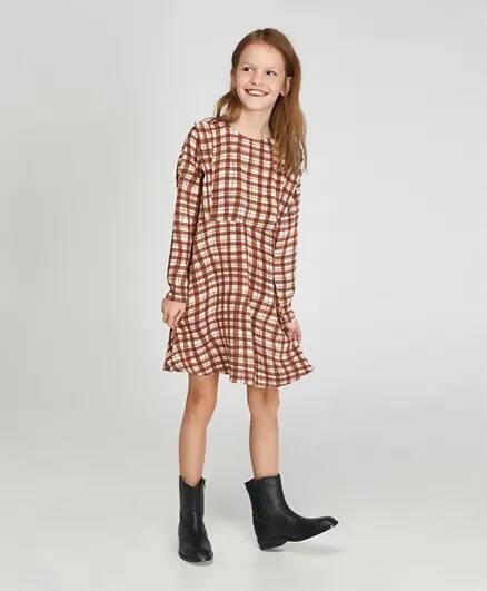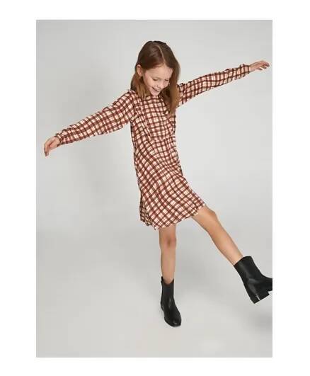 Type - DressFabric Composition - ViscoseNeck - Round NeckSleeves - Full SleevesLength - Knee LengthPattern - CheckedFit - Regular Fit100% Viscose