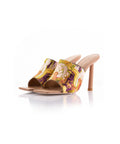 The ETENA mules/high heel sandal is a beauty to behold. This open toe mule hoisted on a cylindrical heel beautifully wraps the foot with an intricate hand embroidery design of the ANDREA IYAMAH EVE PRINT. This piece will stand out in any shoe closet for good reason. High heel mule with square toeCylinder shaped, coated heelEmbroidered fabric bandMicrofibre leather liningPadded foot support4" high heelStandard to wide fit