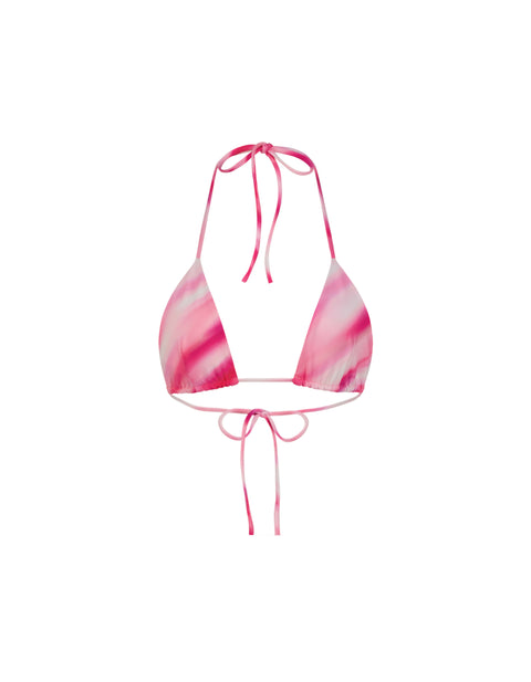 The classic halter neck top with tie back is Charlotte Elize’s best seller. Made from ultra luxurious sustainable fabric and featuring Charlotte Elize’s unmistakable custom print of bright pink swirls. The newest collection “Splash”, draws inspiration from art icons Andy Warhol and Jackson Pollock. This classic style has been transformed with its custom print, if bright paintbrush strokes. Get ready to become a beach muse.HighlightsPink Swirls - all over printFully reversibleStretch-designRemovable care labelMade in BaliBikini Top Triangle cup Halterneck tie fasteningCompositionSustainable fabric with trace technology 14% Elastine / spandex 86% Nylon Care instructionsHand wash; Do not tumble dry;Do not dry clean; Do not iron;Do not bleach;