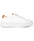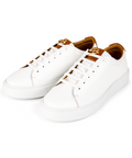 Stefano Borella Robert Low-Top Dress Sneaker: The Robert sneaker is a stylish evolution of the classic trainer, merging everyday comfort with Italian craftsmanship. Made from premium full-grain calfskin leather, each pair is hand-painted for a unique finish, and the Black & White version features a bold "Stefano Borella Collezioni" fabric band. Its lightweight EVA outsole provides grip and all-day comfort, while the pillow-padded tongue enhances wearability. Versatile enough for both casual and formal outfits, the Robert sneaker is a must-have for those who seek a sporty, stylish look. 100% made in Italy.The Robert low Top - WhiteMaterial: Full-grain calfskin leather