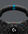FEEL THE FUTURE OF RACINGMeet the next generation of racing wheels. The award-winning Logitech G design is reengineered to dial into your game physics, delivering unprecedented realism. Feel the pistons pumping, the gravel crunching, and every shift, drift, and hairpin turn like never before.NEXT-GEN SIMULATIONOur latest innovation in force feedback technology connects directly to in-game simulation engines and physics to produce higher fidelity, real-time responses. The feedback frequency range is also increased for dramatically improved detail and realism compared to previous generations.CLOSED-LOOP MOTOR CONTROLThe right current means the right torque. G923’s advanced firmware monitors all the current flowing through the wheel motors, continuously adjusting voltage to match outputs from game physics. By going beyond default settings, G923 delivers pinpoint accuracy and unprecedented realism.MORE TRACTION. LESS SMOKE.Get off the starting line cleaner and faster with a programmable dual clutch launch assist in supported games.CRAFTED FOR RACINGThe classic design—modernized. The new colorway, premium brushed metal, automotive-style leather stitching, and polished pedals give G923 a professional finish. Form follows function with an integrated center marker and rotary dial.BUILT-IN REV INDICATORBuilt-in colored LEDs show your RPM range in supported games. See when you’re redline-ing—right in your line of sight.
