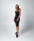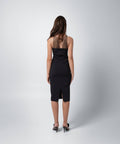 Cut from crepe for a close fit, madebyZA signature dress has halter neck crafted with assymetric cut crystalised mesh that frame the curved neckline.Timeless in every way! Dress it up with heels and red lipstick!Main: 98% Polyester, 2% Elastane Contrast: 100% PolyesterDry Clean Only