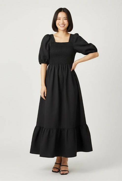 Basic Ruffle Dress With Baloon Sleeves.Polycotton.Made In Turkey.