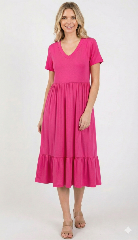Pembe Basic Midi Frill Dress in Textured Fabric.% 100 Polyester.Made In Turkey.