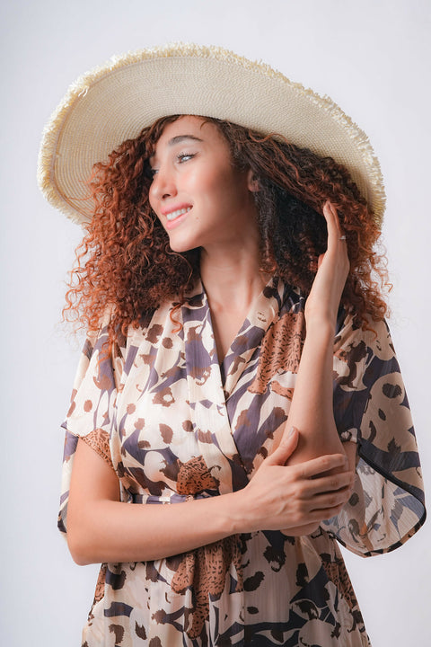SEASHELL HANDMADE FLOWER DESIGN HATBIG ROUND SILVER AND GOLD BEIGE HATONE SIZE