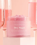 Cheers to your smoothest skin ever. Uncover glowing skin with Hey Sugar Body Scrub's all natural ingredients that exfoliate and hydrate. This pink champagne scented body scrub is like happy hour for your skin! These ingredients may be sweet, but they are mighty tough on dry skin. Hey, Sugar is an all natural, deeply moisturizing and gently exfoliating body scrub that will leave skin glowing and thirsty for more. Massage a scoop of body scrub onto dry skin for an intense exfoliation or onto damp skin for a more gentle exfoliation. Scrub in circular motions. Let sit for a minute or two for maximum hydration. Rinse off thoroughly. Repeat two to three times a week.