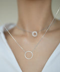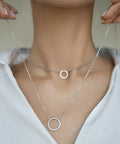 The Circle necklace is a modern classic for everyday style. Win-win model EVGENIA MOMENT: signature contrast of strength and lightness. Chain length: 40cm + 5cm adjustment chain, circle diameter: 1.8cm.