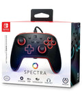 Illuminate your gameplay with the PowerA Spectra Enhanced Wired Controller for Nintendo Switch. Officially licensed by Nintendo, this gamepad features 8 brilliant colors and mesmerizing automatic 8-Color Rainbow Phase effect. The Spectra Enhanced Controller for Nintendo Switch also offers premium gamepad features at an affordable price: two mappable gaming buttons that you can program quickly mid-action, a luxurious soft-touch faceplate with embedded anti-friction rings for effortless control, and contoured textured analog sticks. Light-up your gaming on a whole new level. Plus, PowerA backs all products for 2-years, so you‘ll play with confidence. *For use only while Switch is docked. Does not support HD rumble, IR, motion controls or Amiibo NFC.Features: