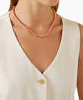 Pyramid Stud Tennis Necklace Hot Pink Gold