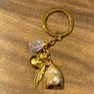 REAL PEARL KEYCHAIN WITH AMETIST NATURAL STONE