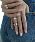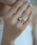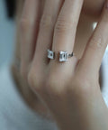 An open ring with emerald-cut stones, is incredibly concise and elegant. It is the perfect complement for both casual and evening looks. In a word — a long-term investment in your jewelry wardrobe!The height of the stone is 8 mm and 4 mm.