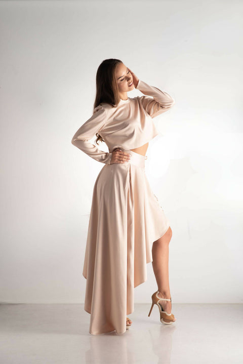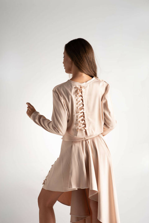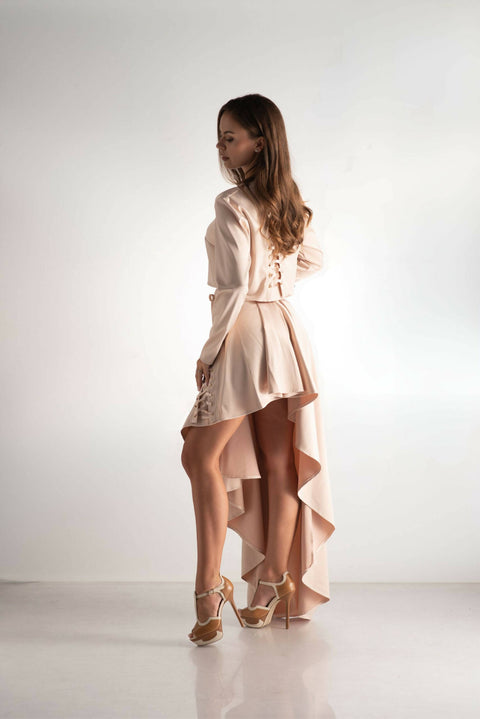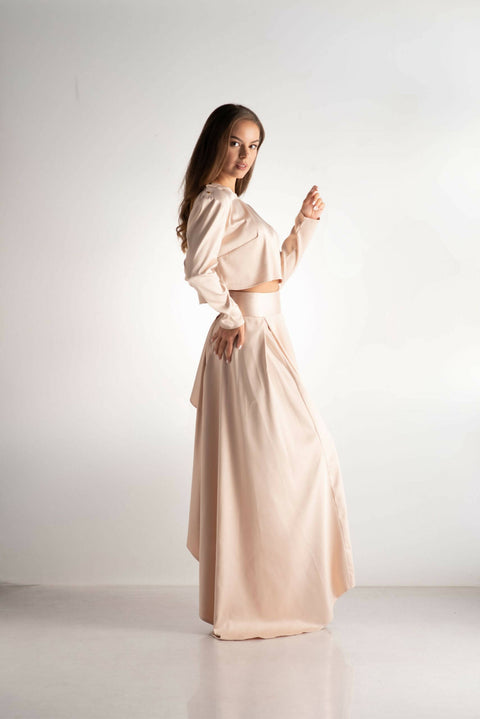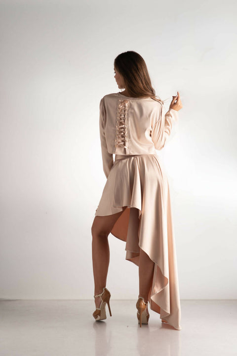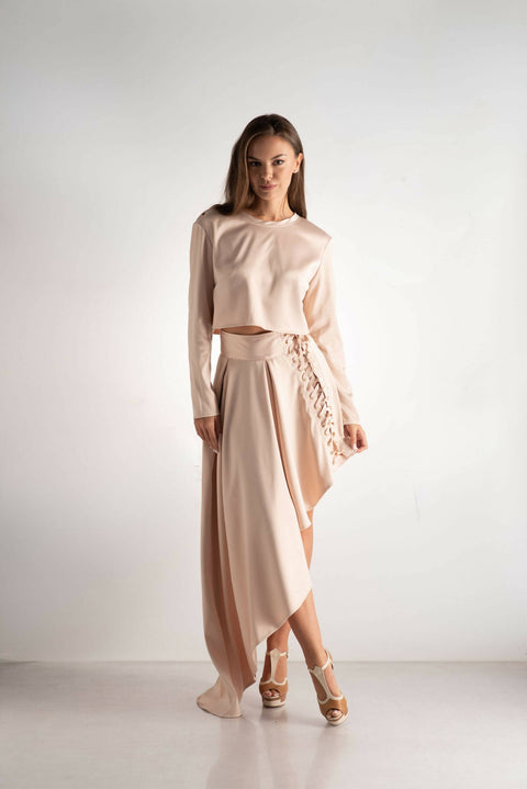 Indulge in the allure of opulence with our 'Pastel Ensemble.' This luxurious set features an asymmetric, extravagant design, bringing a captivating flair to your wardrobe. The matte satin skirt, with its flowing silhouette, exudes elegance and grace. Immerse yourself in a palette of pastel shades, adding a touch of sophistication to this intriguing ensemble. Perfect for those seeking a statement look with a twist of modern extravagance, the 'Pastel Opulence Ensemble' promises a journey into the sublime world of fashion sophistication.Color: PinkFabric composition:SatinFit: Relaxed, LooseModel Height & Size: 170cm, size S