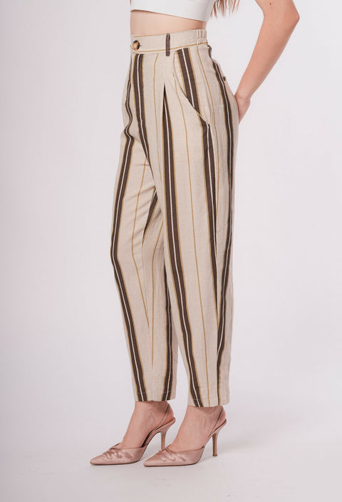 Sabo naturel carrot -cut trousers in striped linen fabric.Made in Turkey.