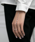 Jewelry doesn't have to be serious. It should shine and be beautiful. A scattering of stones decorating a woman’s hand is beautiful.Bracelet length: 15 cm + 3 cm adjustment chain, distance from ring to bracelet: 9 cmComposition: 925 sterling silver and cubic zircons