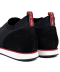 Stefano Borella SB263: Combining elegance and innovation, the SB263 sneaker features a sleek blend of high-quality knit fabric and white calfskin leather, hand-painted to showcase Italian craftsmanship. Lightweight and designed for all-day comfort, the sneaker has an extra light rubber sole with Stefano Borella's iconic red stripe, symbolizing style and movement. 100% made in Italy, the SB263 is perfect for those who desire a sporty yet refined look.Black Fabric + SuedeMaterial: fabric + Suede