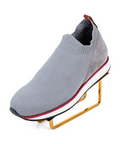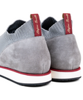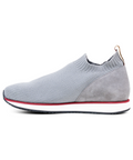 Stefano Borella SB263: Combining elegance and innovation, the SB263 sneaker features a sleek blend of high-quality knit fabric and white calfskin leather, hand-painted to showcase Italian craftsmanship. Lightweight and designed for all-day comfort, the sneaker has an extra light rubber sole with Stefano Borella's iconic red stripe, symbolizing style and movement. 100% made in Italy, the SB263 is perfect for those who desire a sporty yet refined look.Light Grey Fabric + SuedeMaterial: fabric + Suede