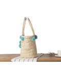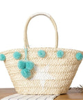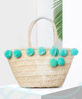 straw bag with blue pompom