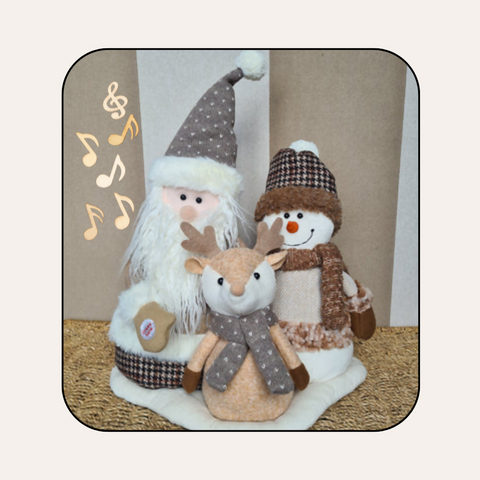 *Origin: The handmade Festive Elegance Doll Collection, Musical Family'' Santa, Moose, Snowman'' is beautifully handmade in Belgium for your Christmas decorations and entertainment.*Care: This musical Santa should be kept in an airy environment on any surface during this Christmas season. use a clean dry cloth to dust it and keep away from water.*Gift idea: This musical Family is a perfect gift idea for loved ones during Christmas. It comes with Batteries and the family sings melodious Christmas Carols for your entertainment in this festive season.*Material: The material used is eco-friendly and it can't cause any allergies on the kid.*Size: 40cm