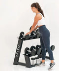 The Dumbbell Rack is a 2 tier free weight storage rack designed to hold 5 dumbbell pairs. This sturdy structure is small enough to fit in most home gym setups and big enough to support all your free weight exercises. *Dumbbells are not included, for display purposes only.Size: 1200x640x770mmMain Tube Size: 120x60x2mm