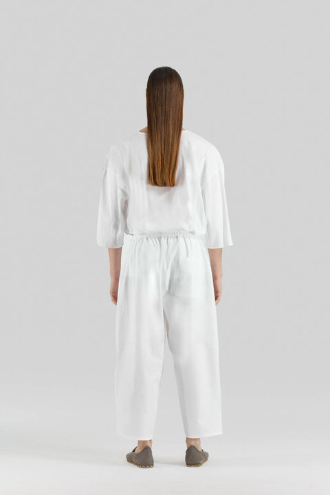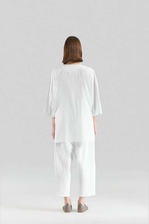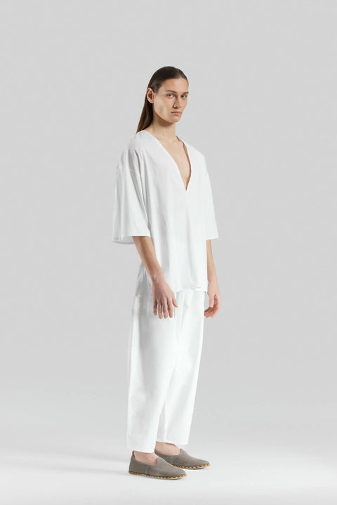 Oversized t-shirt in ecru. With its deep "V" cut on the front and fine linen fabric, it combines minimalism and boldness.This signature piece is one of the many remarkable designs in the Unborn Iconic Collection.
